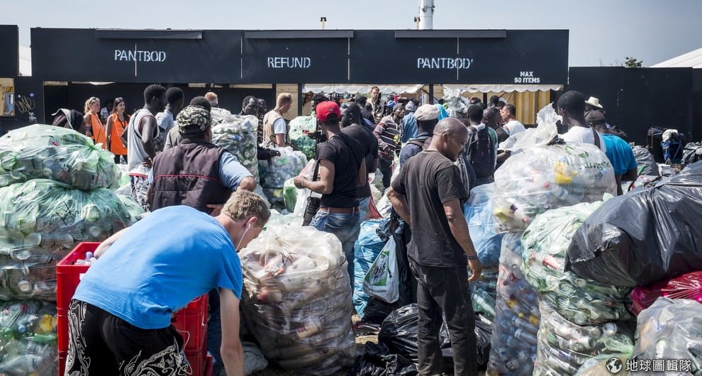 在 2015年的羅斯基勒歐洲音樂節現場可以看到大量的回收物,該音樂節以追求環境友善聞名。