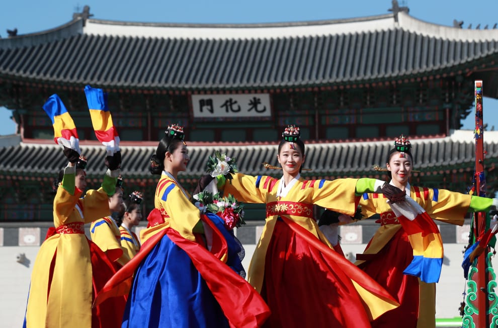 身著朝鮮時代傳統服飾的舞者,來到首爾景福宮光化門表演。對現在的南韓青年來說,財閥過度發展讓他們成為社會不平等的受害者。