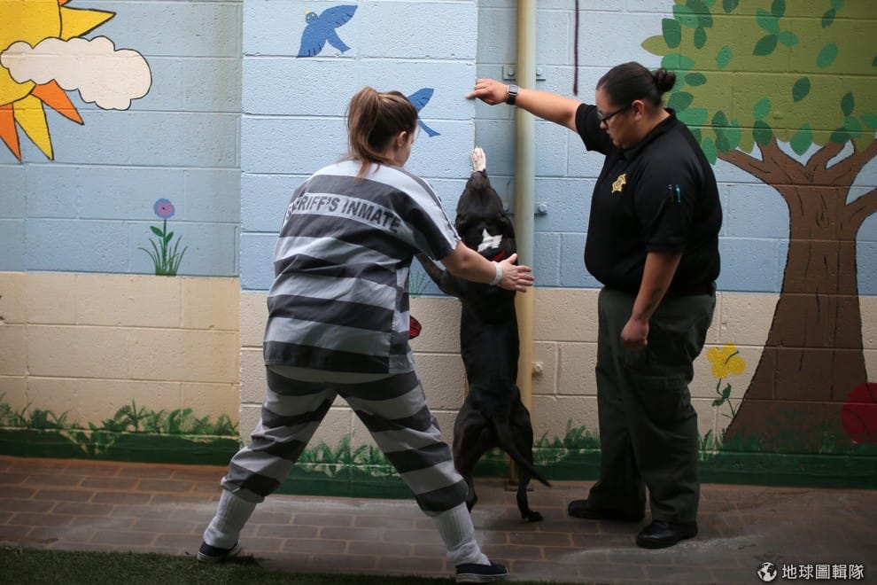 路透社男性受刑人正在和狗狗互動,他們參與的是另外一項計畫。如果這些動物的健康與精神狀況良好,那牠們就會被送去圖中的馬里科帕縣監獄,由另外一批受刑人照顧。