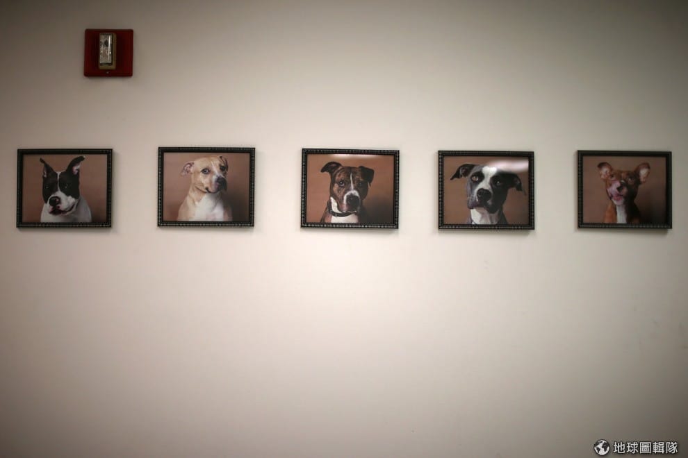 路透社數張被救援的動物照被掛在庇護所的牆面上。這座庇護所有數千隻動物來來去去,駐足在這裡的動物包含了貓、馬,但大部分的時間都是狗。