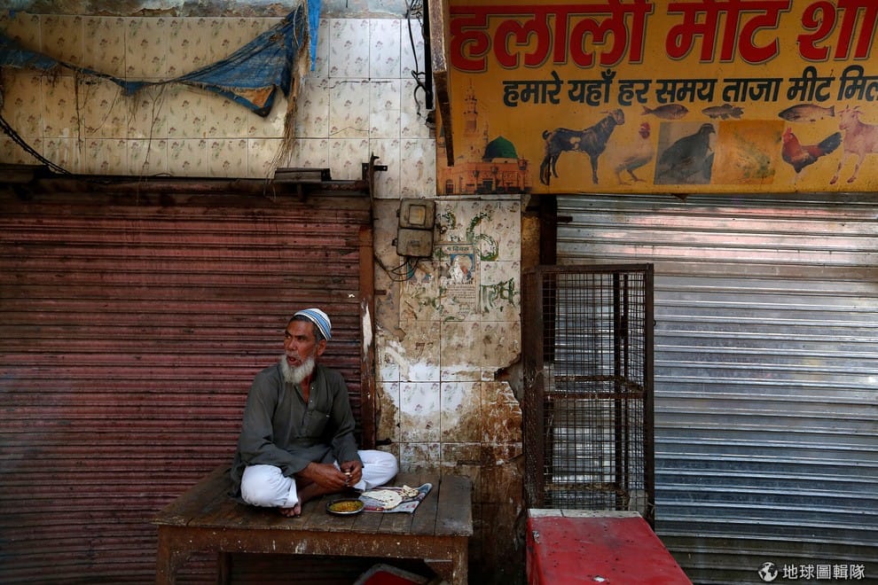 在今年 3月的印度哈里亞納邦,一名穆斯林肉商坐在他剛剛被勒令停業的店家前面。