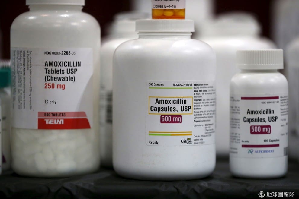 攝影師拍到了幾罐抗生素阿莫西林(Amoxicillin),照片拍攝地點是位在美國加州的免費醫療和牙科保健診所。