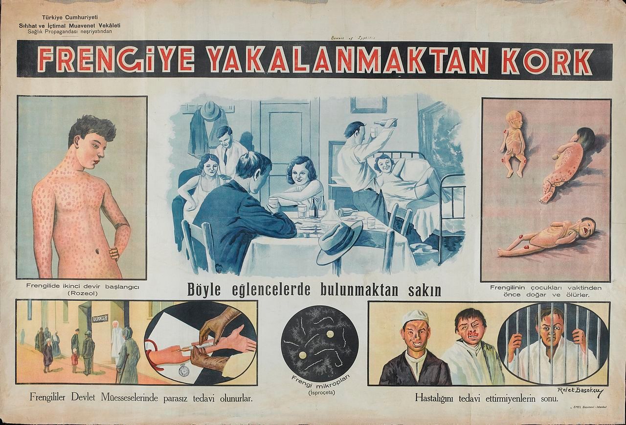 圖為土耳其在過去以圖像的方式,告訴人們梅毒會有什麼症狀,又該怎麼治療。近年來,梅毒感染在歐美國家正出現逐漸上升的狀況。