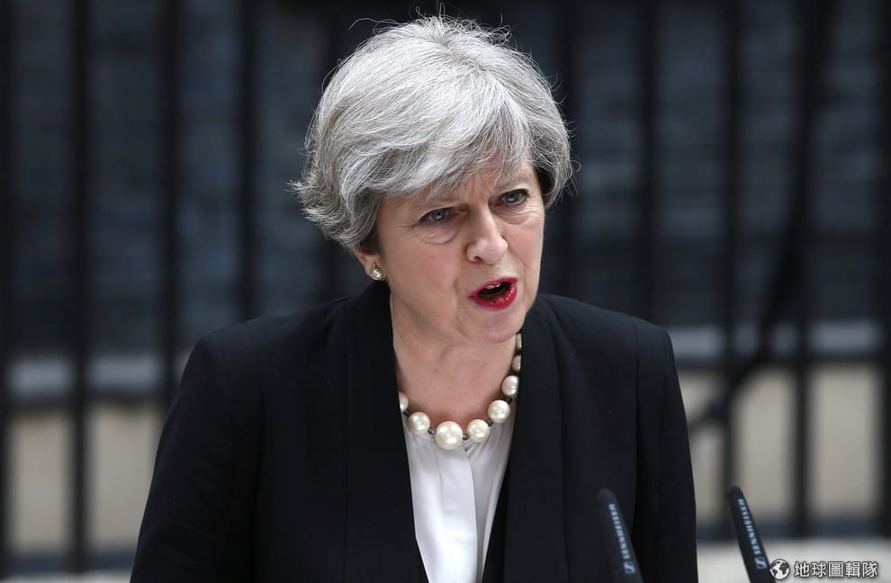圖為英國首相梅伊,她在曼城爆炸案後召開記者會,警告全國民眾另一場攻擊可能「近在眼前」,目前當局也將受恐攻威脅程度調到最高級。
