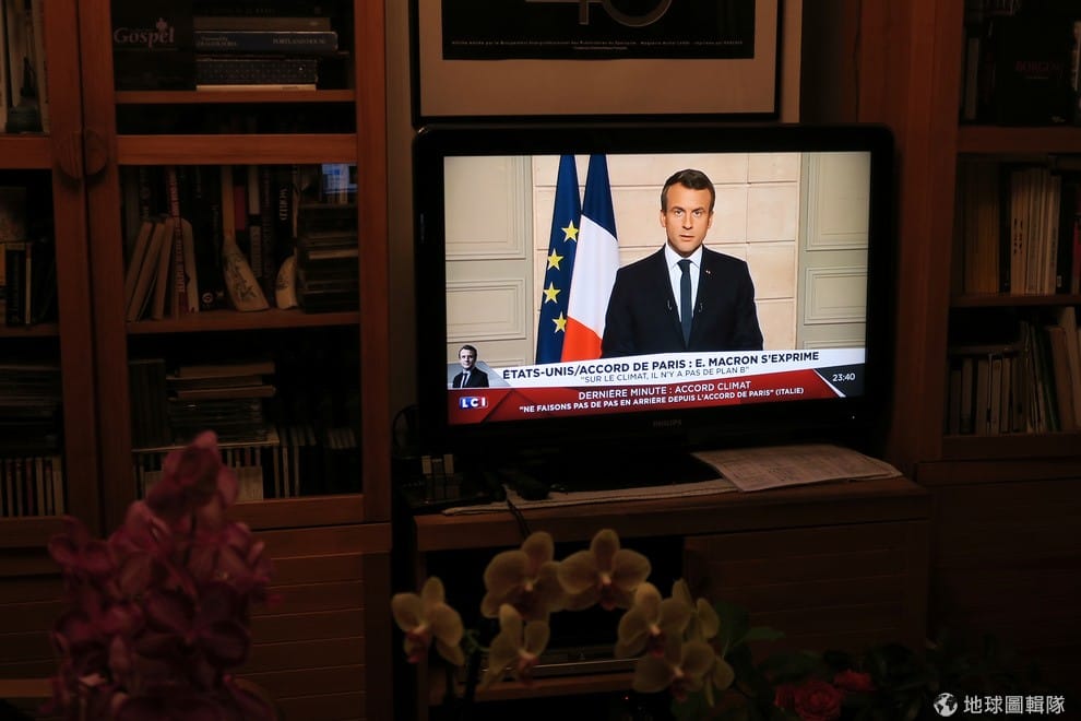 在川普發表聲明後,法國總統馬卡宏(Emmanuel Macron)也出面召開記者會,以英文表示他們會繼續致力於緩解全球暖化,並表示要「讓這個星球再次偉大」。