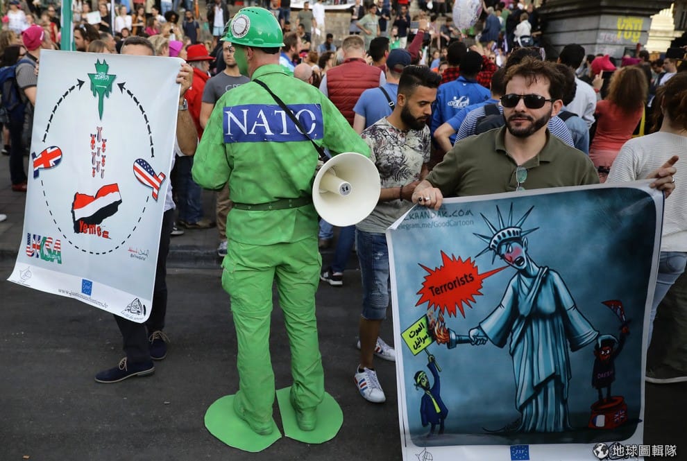 NATO的存在充滿爭議,今年NATO高峰會會場外不乏抗議民眾,將周遭包圍地水洩不通,抗議帶領NATO的英美國家擁有的強大武力威脅世界和平。