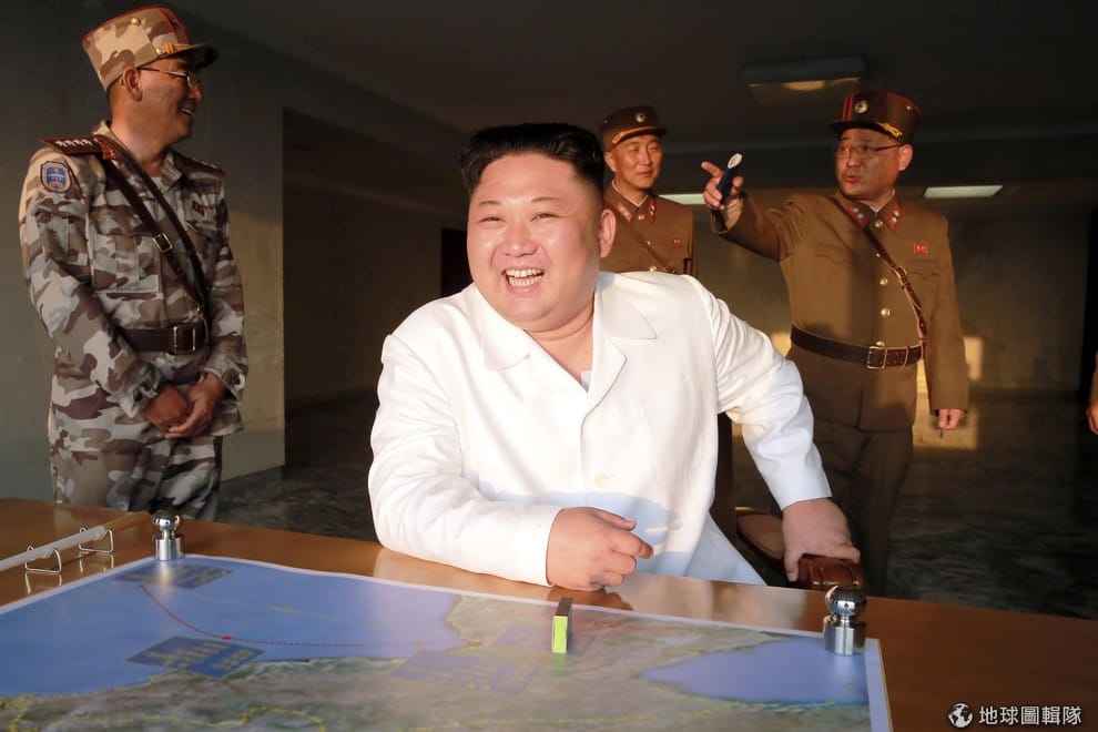 圖為北韓領導人金正恩,他在今年五月開心地看著軍隊試射火箭。近日,北韓開始宣傳國家生產的「Ryonghung iPad」的平板,希望可以打開更多市場。