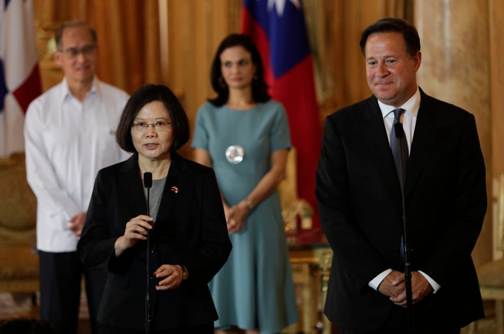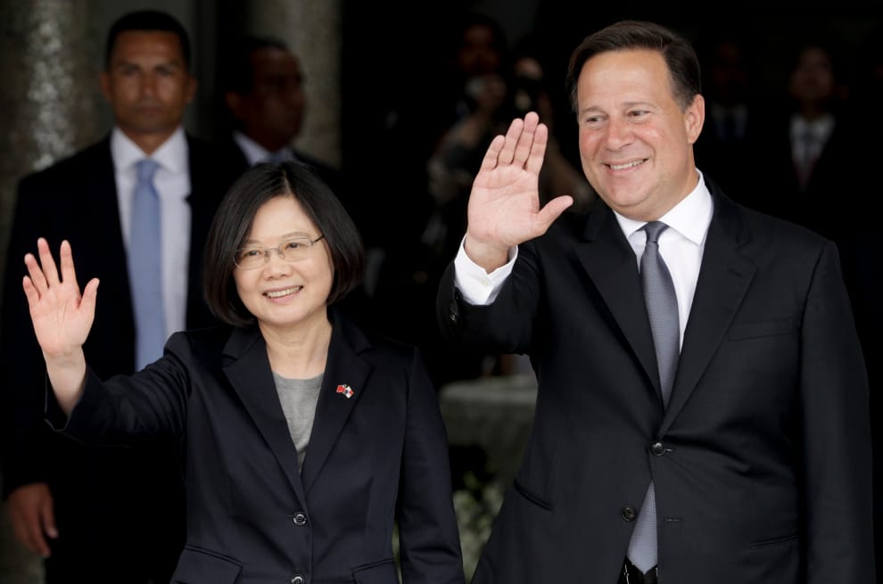 在台灣時間今天上午,巴拿馬政府宣布與中國建交,在承認一個中國的前提下片面與有百年邦交的中華民國斷交。圖為 2016年6月,出訪巴拿馬的中華民國總統蔡英文和巴拿馬總統瓦雷拉。