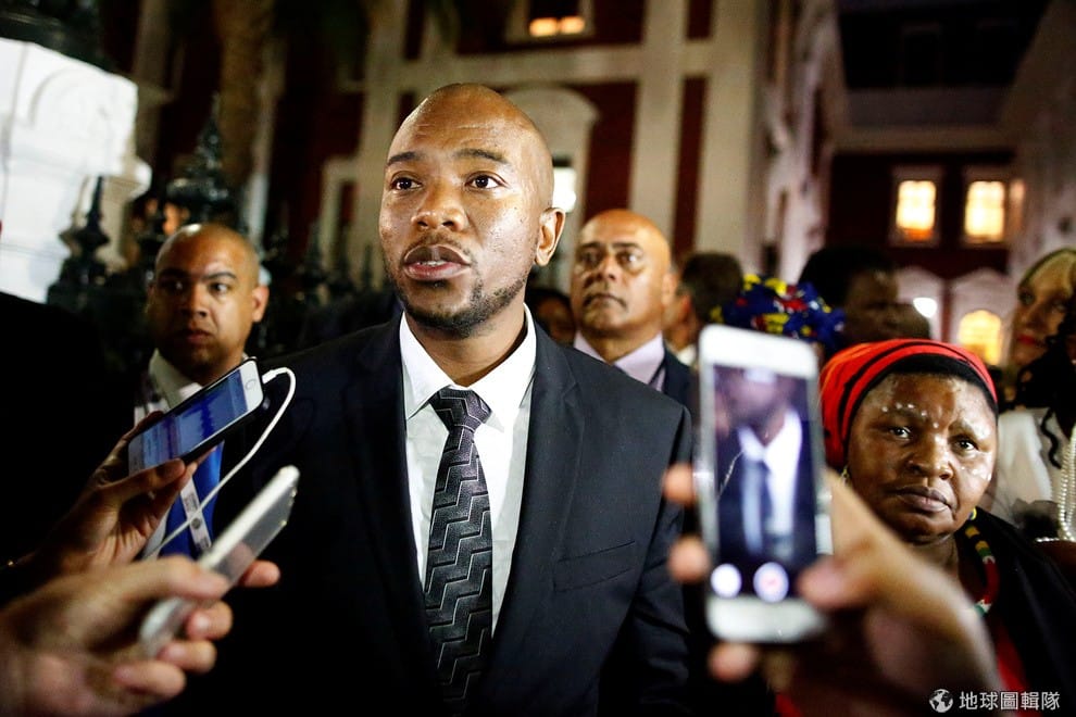 圖為本月 2號,一名對南非總統祖瑪(Jacob Zuma)不滿的示威人士手上拿著「開除祖瑪」的牌子。目前南非總統祖瑪以及他的政黨非洲民族議會(ANC)聲望低迷,民主聯盟自然也不會錯過這個機會。