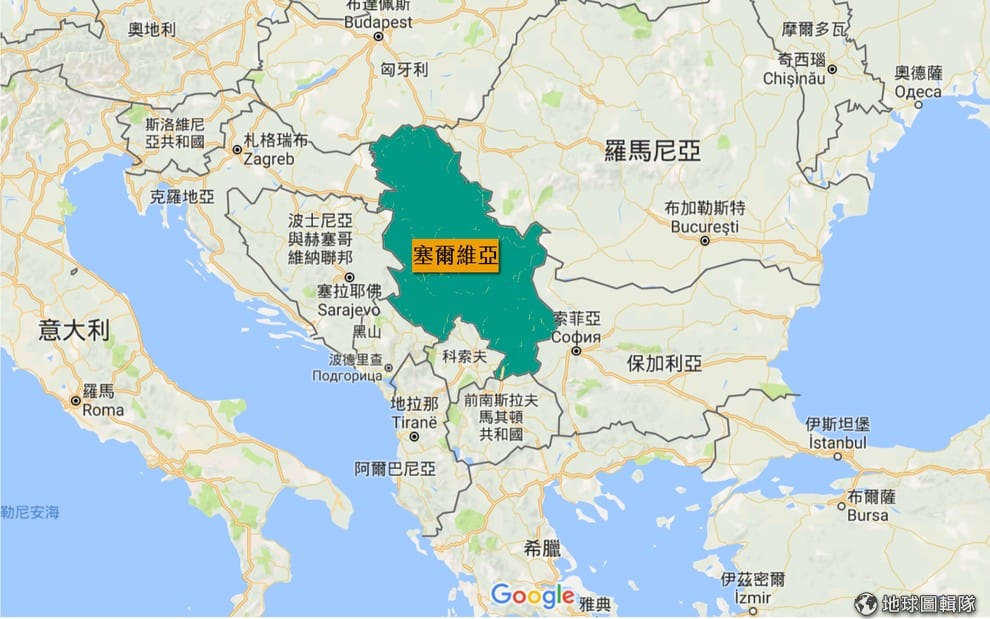圖中綠色的部分即為塞爾維亞,相較來說,巴爾幹地區的國家對同志並不友善,因此任命布納比奇可說具有重要意義。