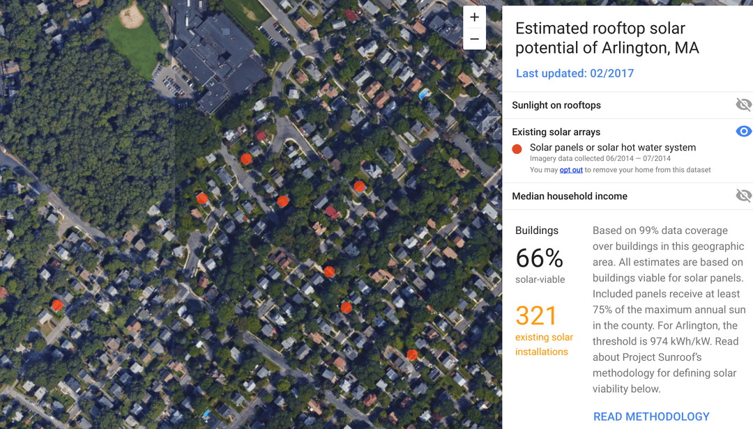 有了吉林漢姆教授的研究當基礎,Google在這個星期為上路兩年的「太陽屋頂計畫」(Project Sunroof)加入了新功能──顯示鄰居有沒有裝太陽能板。
