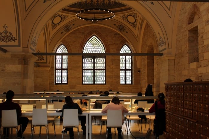 爬上階梯越過伊斯坦堡大學,再穿越土耳其大叔聚集的二手市集,就能抵達巴耶濟德公共圖書館。外觀看起來普普通通,殊不知裡面卻大有來頭,這座公共圖書館的前身原是免費發放食物、供給百人、千人進食的「公共廚房」。