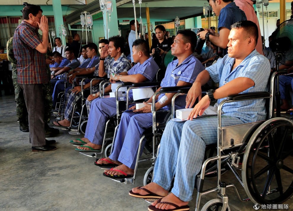 本月 11號,菲律賓總統杜特蒂前往軍事醫院,一一慰問了在作戰後受傷的士兵。