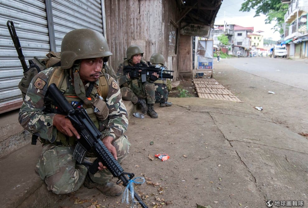 圖為本月 7號,正在進行城市街頭戰的菲律賓軍方。