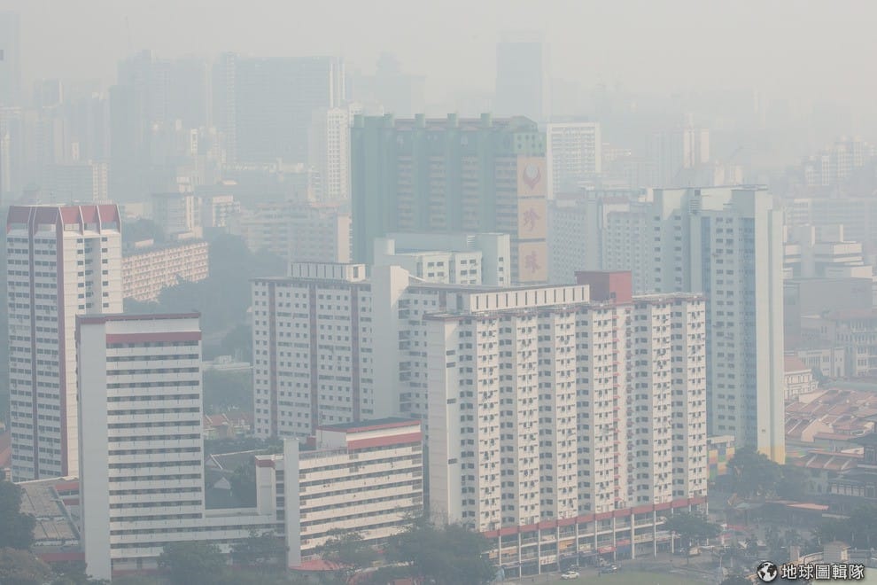 新加坡當地的公寓大樓籠罩在白茫茫的霧霾中。