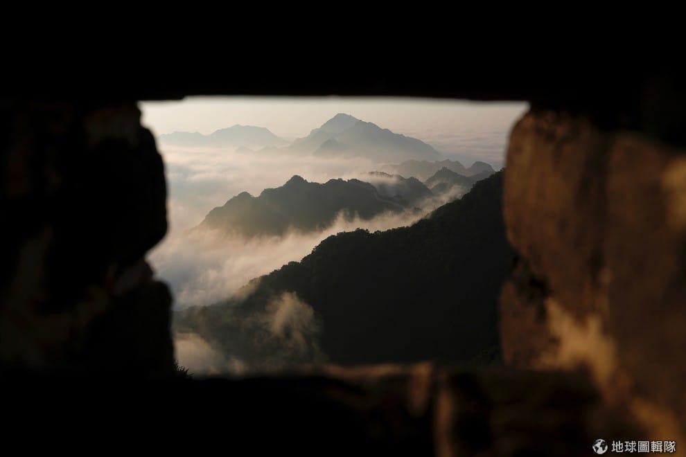 圖為從箭口長城看出去的群山美景。照片是在一大早拍下,所以還能看到環繞在山中的薄霧和遠方的長城。