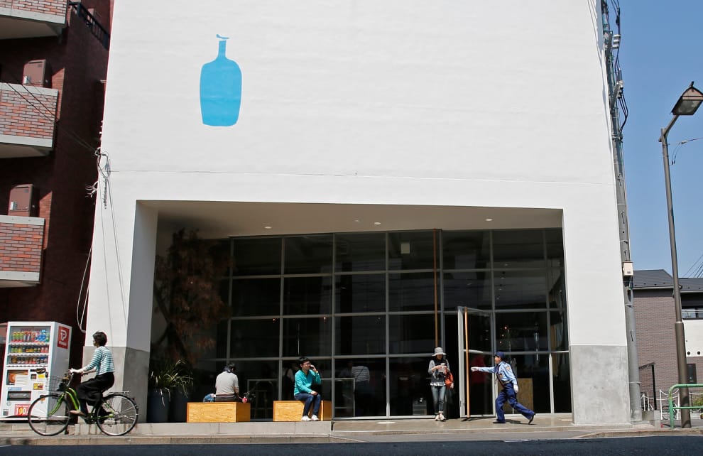現在「藍瓶咖啡」也將版圖拓展到亞洲市場。圖為位於日本東京的「藍瓶咖啡」。
