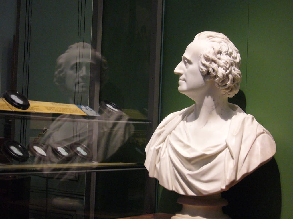 圖為英國經濟學家亞當斯密的半身像。目前沒有人知道亞當斯密提出的理論是否受到北非學者赫勒敦的影響。