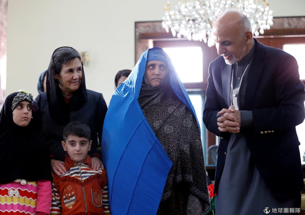 圖中披著藍色罩袍的阿富汗女子名叫古拉(Sharbat Gula)。古拉在 1984年從阿富汗逃往巴基斯坦時,被攝影師麥凱拉(Steve McCurry)拍下了一張人像照片,讓照片不僅成為阿富汗難民最具代表性的圖像,更是許多難民心中希望的象徵。30年後,古拉在 2016年10月被巴基斯坦當局以持有假文件逮捕審判,當時拍下她的麥凱拉為古拉感到不平,認為當局是因為古拉所具有的代表性意義才會特別針對她。
