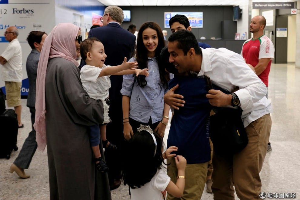在華盛頓杜勒斯國際機場,沙烏地籍的家庭來到機場接他們久久不見的家人。