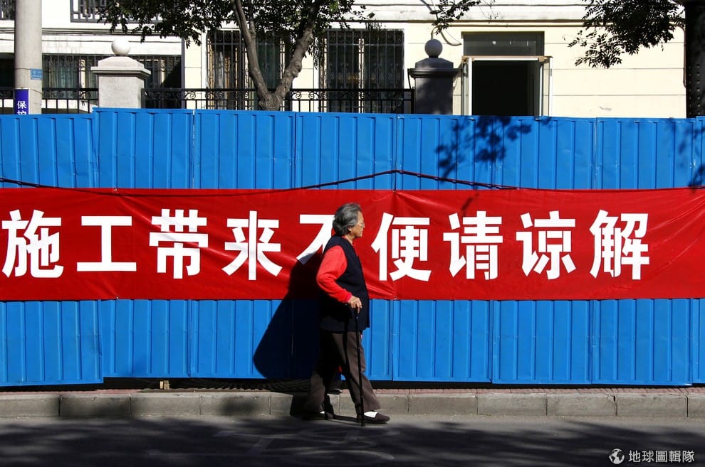 在「施工中」的標語後方,其實是劉霞被軟禁在北京的住處。她的朋友指出,長年的軟禁讓劉霞在身心上都出現問題。