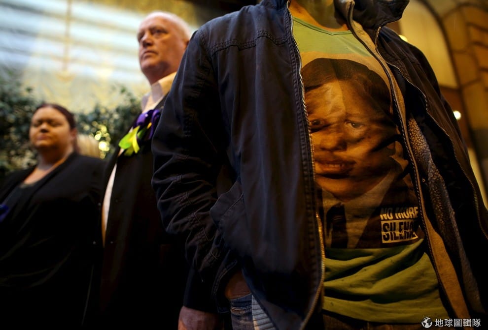 2016年,小時候遭到神父性侵的澳洲男子布萊凱恩穿著印有童年照片的T恤,來到義大利羅馬把過往經歷公諸於世。