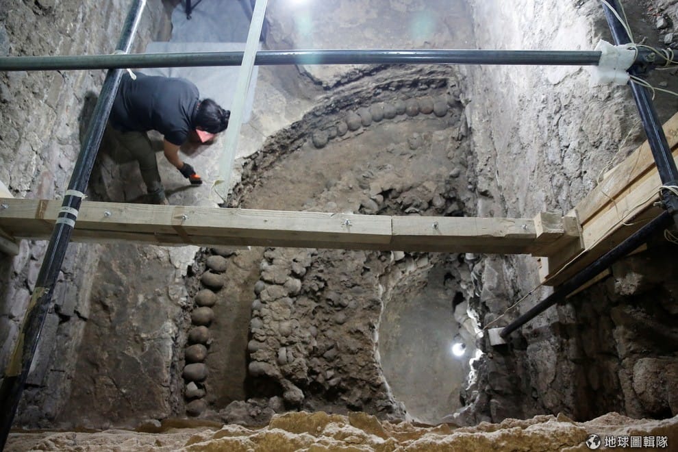 工作人員正小心地在考古現場行走,他們相信這次的發現改變了他們對阿茲提克獻祭的認知。