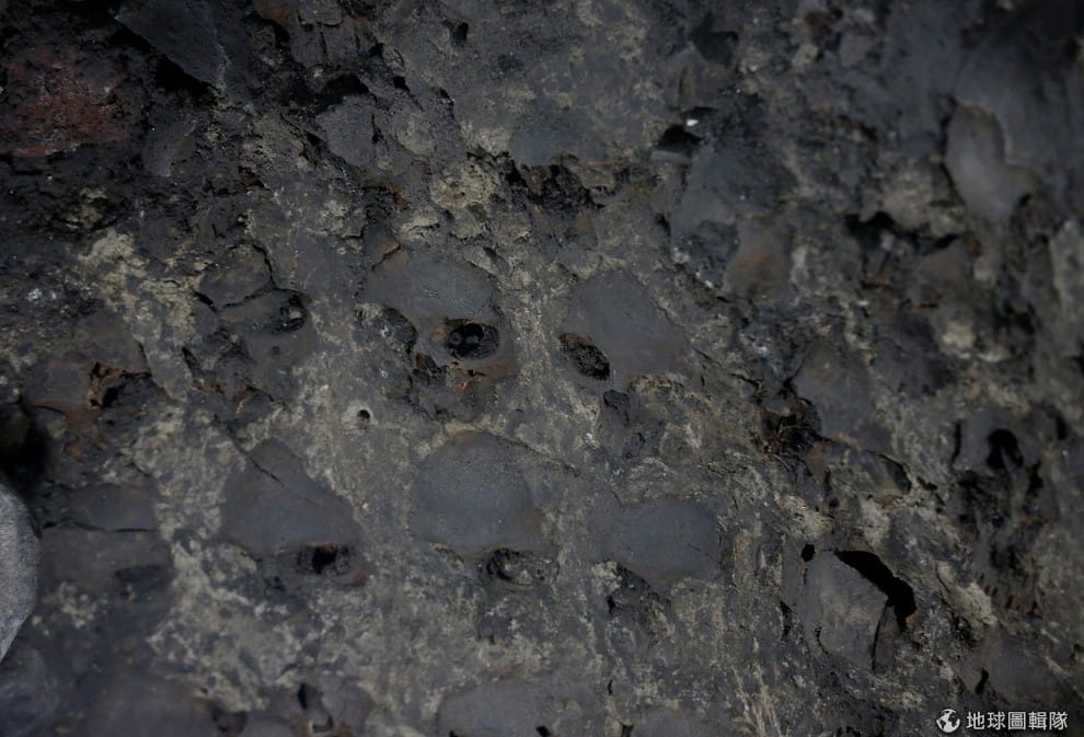 近距離來看,有些頭骨幾乎和石灰岩融為一體。