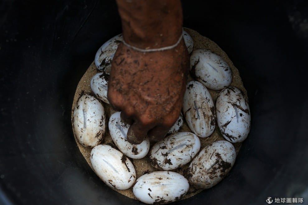 路透社大城府鱷魚農場的工人正在蒐集鱷魚蛋,這些蛋會被工作人員帶到專門飼育鱷魚的地方照顧。