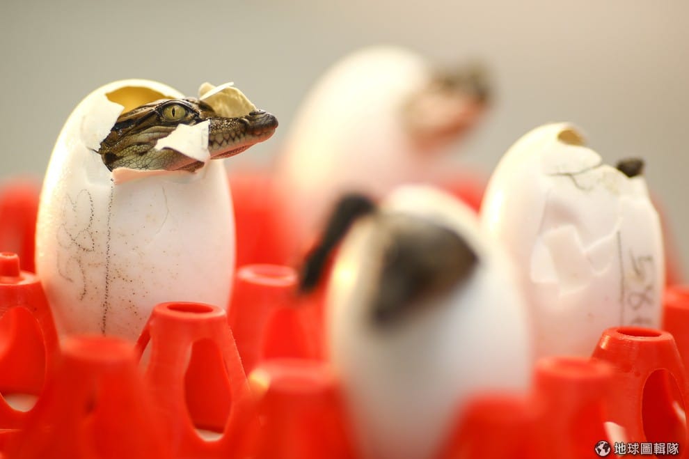 在是拉差鱷魚農場,攝影師拍到數隻剛孵出來的小鱷魚。