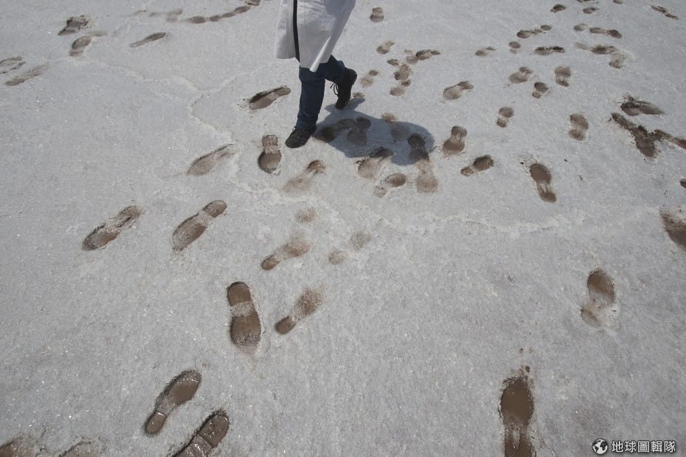 一名伊朗觀光客正在當地的鹽湖留下一個個腳印。除了指控卡達支持恐怖主義,各界認為卡達與伊朗關係交好,也是沙烏地阿拉伯不滿的另一個原因。