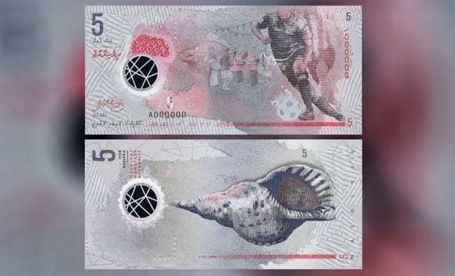 合作夥伴圖為Ran Dhihafaheh 紙鈔系列的 5拉菲亞紙幣,未來預計流通。