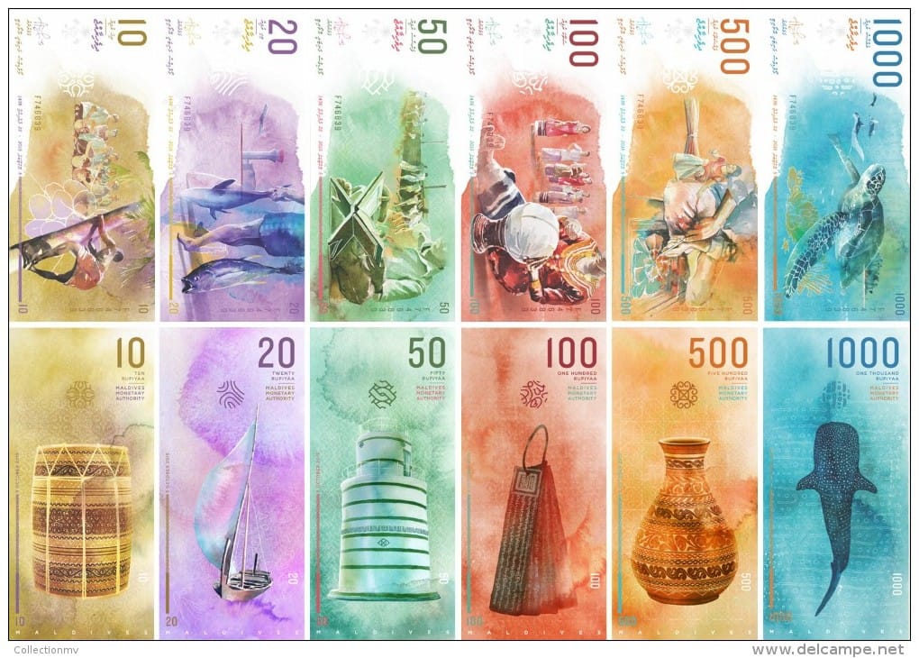 圖為於 2016年1月26日發行的Ran Dhihafaheh紙鈔系列,由當地藝術家Abdullah Nashaath所設計。