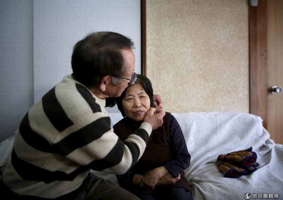 一名老公正在幫他患有失智症的妻子穿戴GPS追蹤器。由於認知能力與失智有關,因此研究相信他們又朝理解失智症的成因更進一步。
