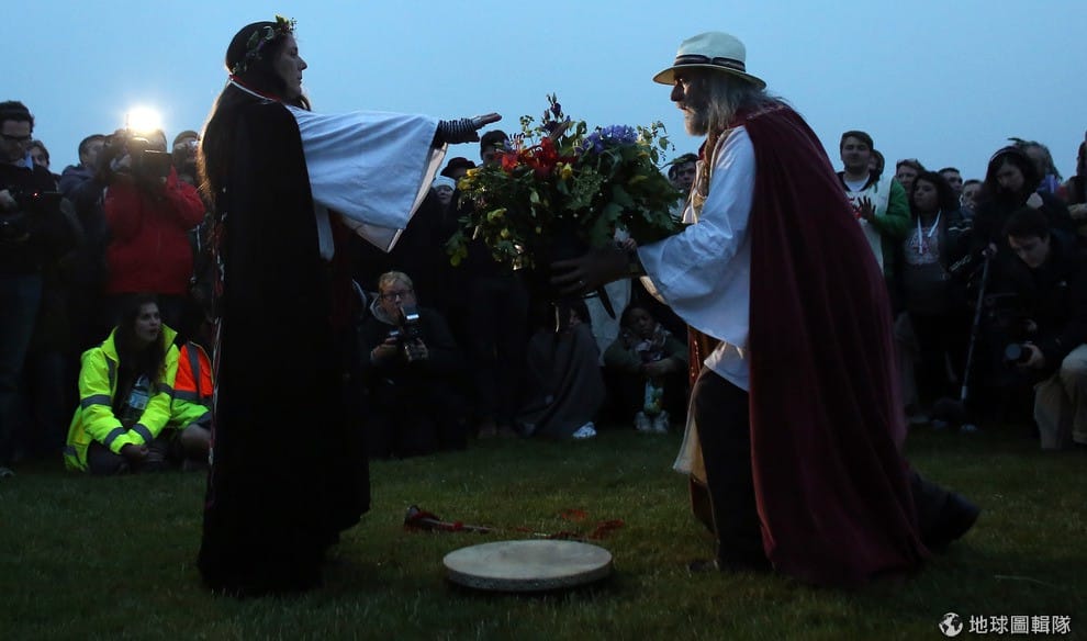 gettyimages照片中右邊的是德魯依教中高等祭司茂福林(Rollo Maughfling),他在眾人的圍觀下進行夏至日光儀式。