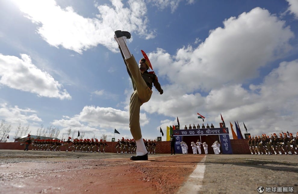 中國和印度在東西段接壤的邊界時有紛爭,專家認為難解的領土劃定範圍在未來仍會繼續引發衝突。圖為一名正在踢正步的印度邊界警察。