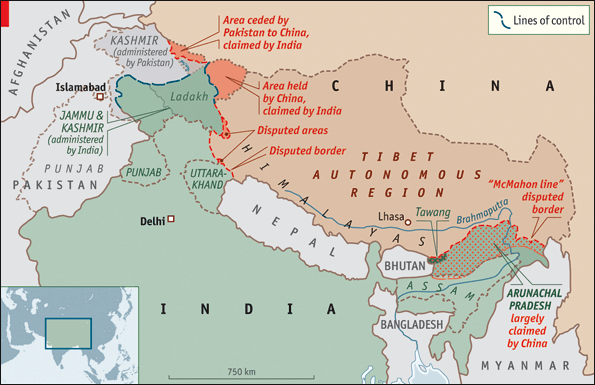 在東段地區(藏南/阿魯納恰爾邦),印度堅持 1914 年英國與中西藏三方已經完成劃界,也就是通稱之「麥克馬洪線」(McMahon Line),但中國政府(袁世凱總統時期)代表因為最後並未在條約上簽字,因此中國一直不承認該線的合法性;在西段邊界(阿克賽欽高原),兩方更是從未正式劃界。錫金地段的邊界線是中國少數可以理直氣壯宣稱不存在劃界問題的地段。