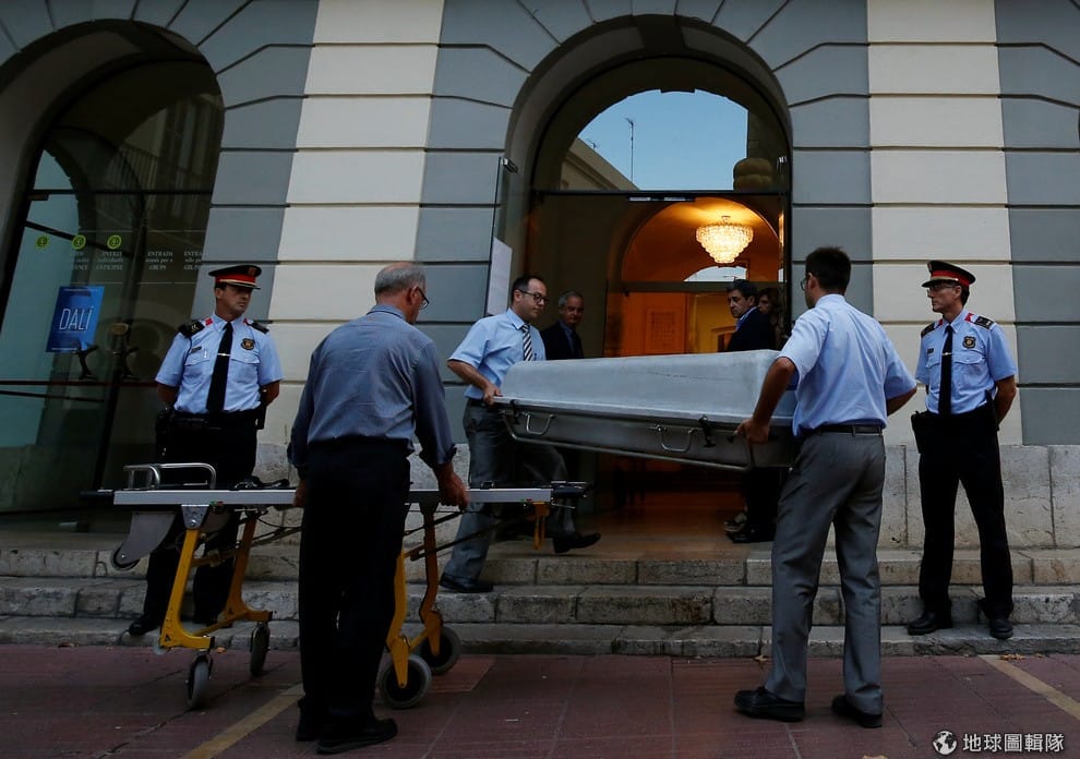 上周五(21),達利的棺木在法官、三名驗屍官、一名助手的環繞下被打開,並被取走了檢驗DNA所需的頭髮、指甲和兩塊大骨頭。為了保護當事人隱私,現場也掛起了帷幕,避免有攝影師、無人機透過窗口窺探到內部,整個採樣過程大概花了 4個小時。