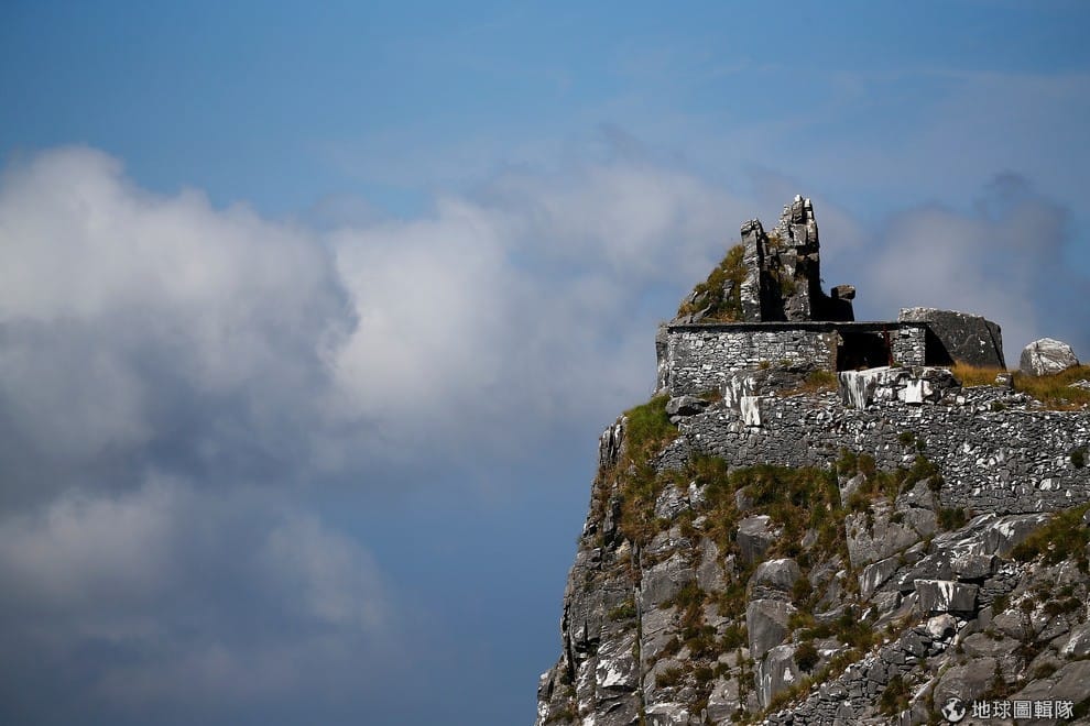 路透社一間工人房舍被架在大理石之間。一片純白的景致總給人一種不像在山上的錯覺。