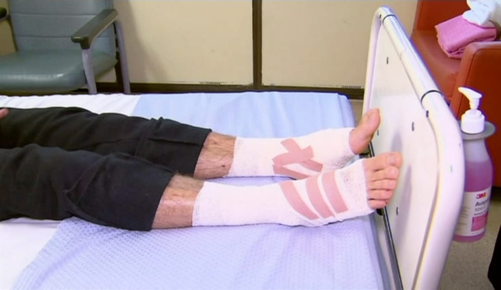 澳洲墨爾本少年卡內則的雙腳遭到不知名海洋生物嚴重攻擊,目前已經被包紮完畢。