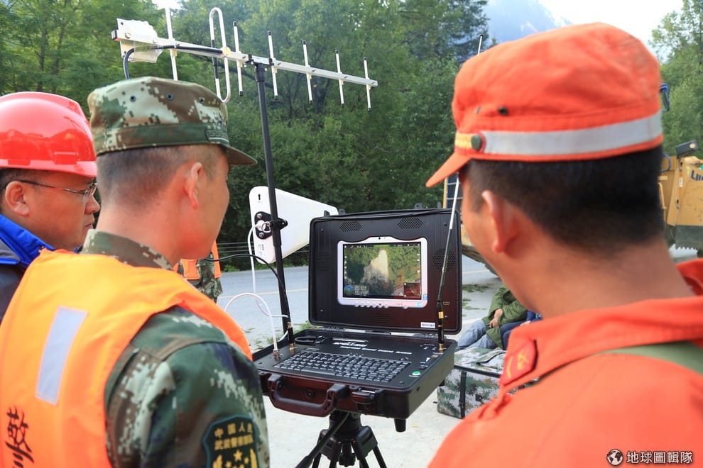 中國特種部隊正在使用無人機觀察災情現場,確認下一步的救援行動。