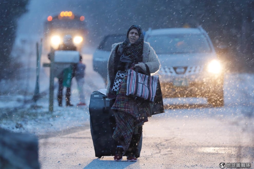 今年 3月,來自敘利亞的難民在大雪紛飛中拖著行李前往美加邊界,希望可以找到棲身之所。