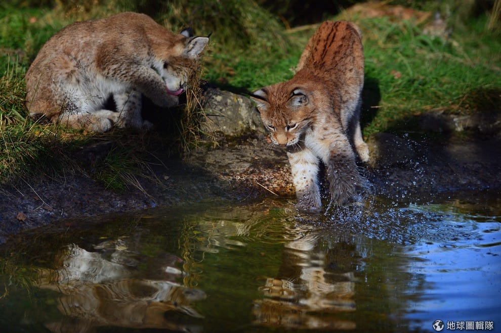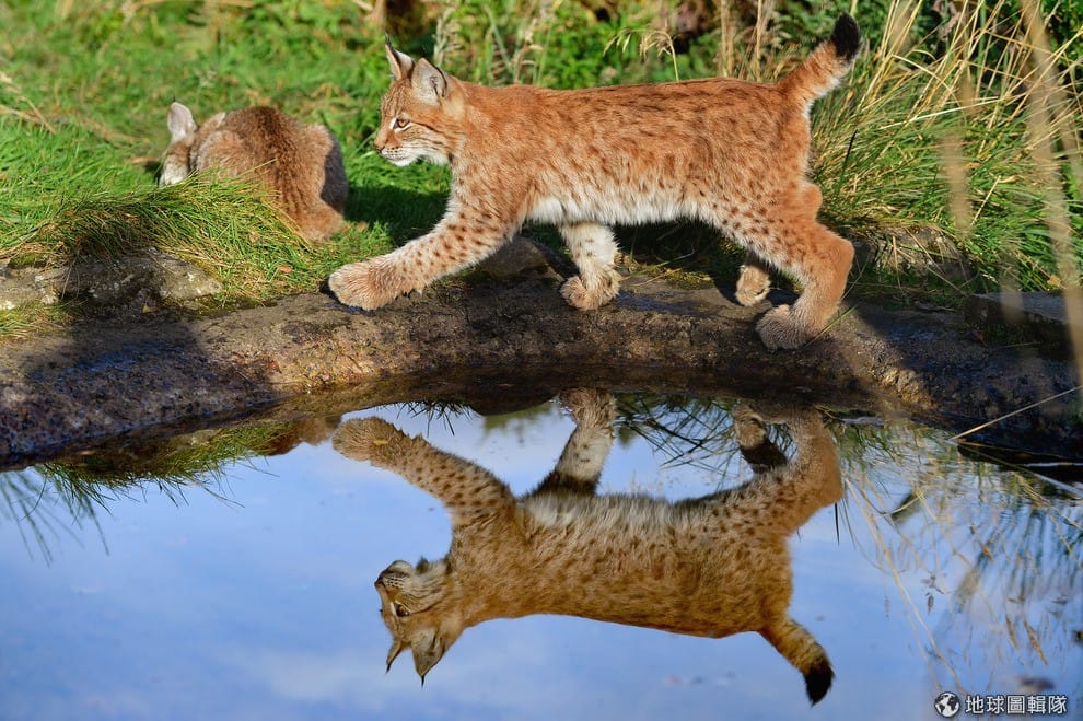 天氣正好的時候,攝影師捕捉到林㹭走過池邊的美妙瞬間