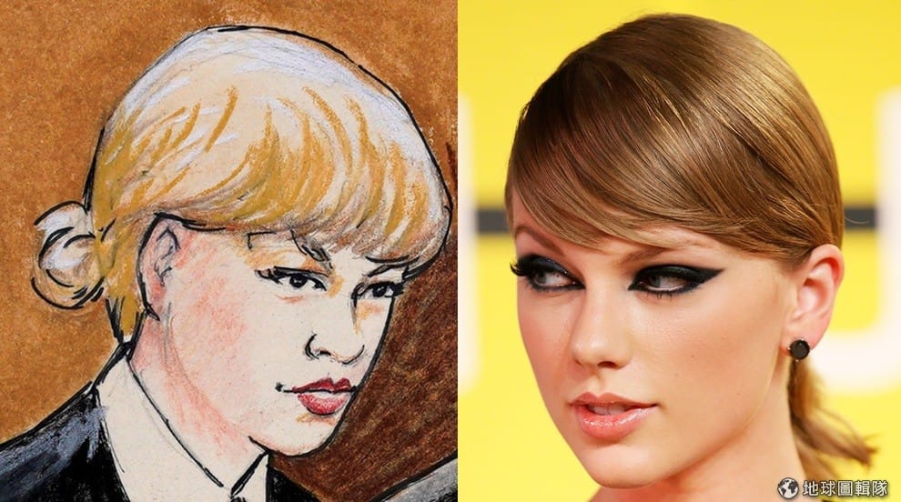 你認為美國流行歌手泰勒絲(圖右)和左方素描中的女子長得像嗎?