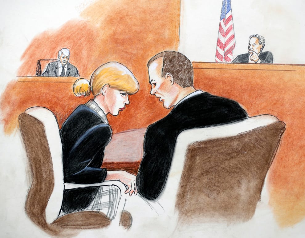 在開庭時,現場禁止任何攝影器材進入,於是法庭畫家康提巴(Jeff Kandyba)成了唯一能還原開庭現場的人。但是,他的法庭素描完成後引起廣大討論,許多人認為畫中人根本一點也不像泰勒絲,網路上甚至出現不少嘲笑這張素描畫的言論。