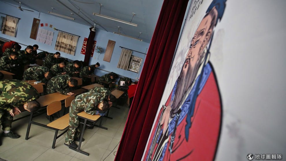 看起來像軍營的地方,其實是中國的網癮戒除中心,這類機構以軍事化管理聞名。照片拍攝於 2014年,在中心內的學生正在被體罰。