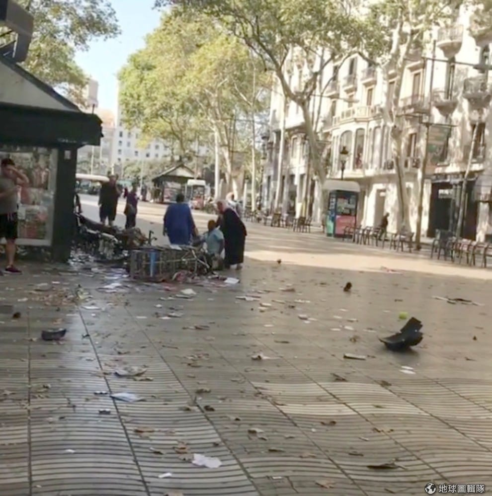 周四(17)下午4:50,西班牙巴塞隆納遊人如織的蘭布拉(Las Ramblas)大道遭到恐攻,兇嫌駕著白色廂型車在大街上高速蛇行,造成 13人死亡,超過 100人受傷。兇嫌直到撞到路旁的報攤才停下,隨後下車逃逸。