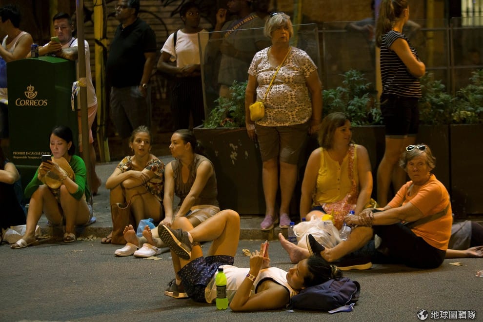 入夜後,人們或坐或躺在路邊等著進入被封鎖的蘭布拉大道區,大家都在等待警方做完地毯式搜索,找到兇嫌的蛛絲馬跡。