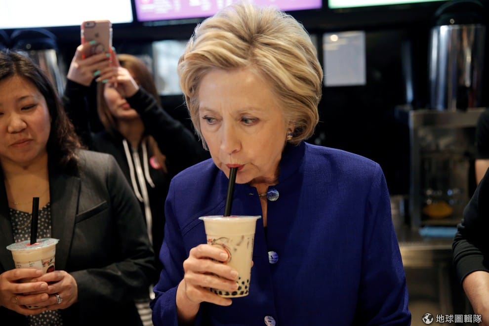 2016年4月,美國民主黨總統候選人希拉蕊(Hillary Clinton)在紐約的功夫茶飲料店喝珍奶。