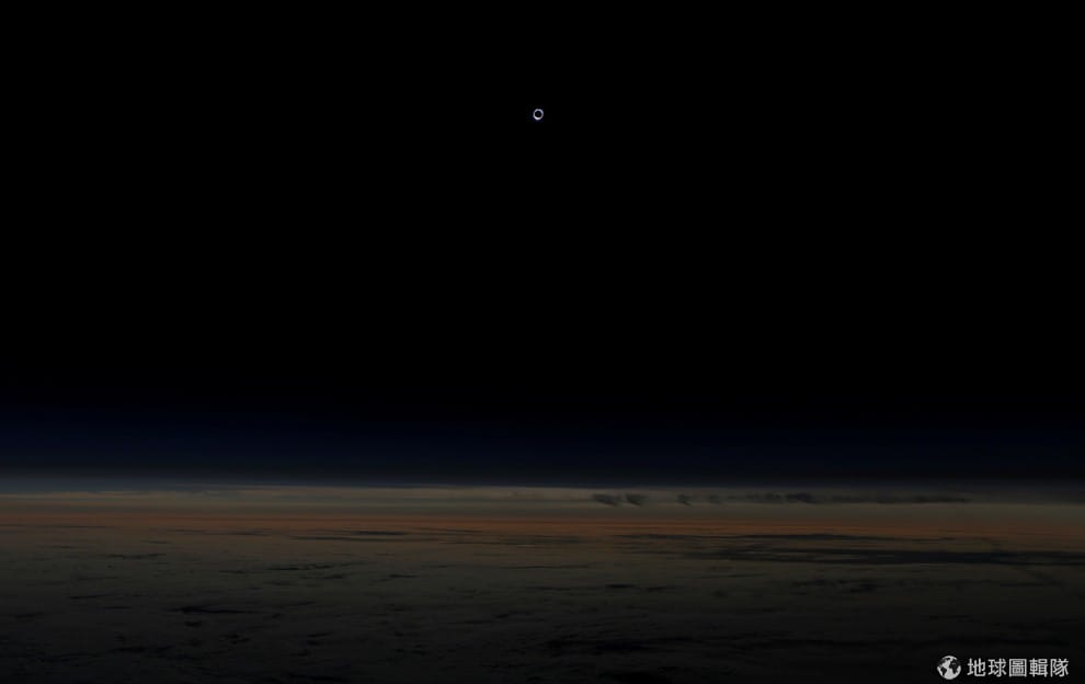 網友NASA HQ PHOTO隨著月球的移動,被遮蓋的太陽幾乎和漆黑的天空融為一體。